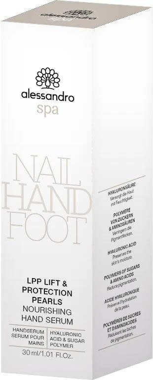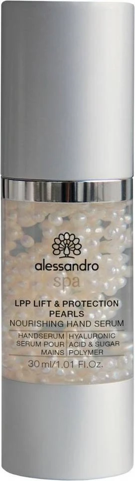 Die Handpflegeperlen dieses hochwirksamen Serums fördern den Regenerationsprozess der Haut und versorgen Ihre Hände mit Feuchtigkeit. Gleichzeitig reduziert das Polymer von Zuckern und Aminosäuren die Bildung von Pigmentflecken. Die Hautalterung ist ein Prozess, der nicht aufgehalten, jedoch um ein wesentliches minimiert werden kann. Linien und Fältchen lassen die Hände älter erscheinen – häufig passen sie nicht zur optischen Gesamterscheinung eines Menschen. Eine schöne, glatte und pralle Haut sieht dagegen gesünder und jünger aus. Die extrem feuchtigkeitsspendende Handpflegelinie Spa von alessandro mit hochwirksamen und pflegenden Inhaltsstoffen wurde speziell für die reife und anspruchsvolle Haut entwickelt. Die Hände wirken sichtbar verjüngt und sind fühlbar glatter und samtweich. Anwendung: Einen Tropfen des Serums morgens und abends auf die gereinigten Hände auftragen und leicht einmassieren.