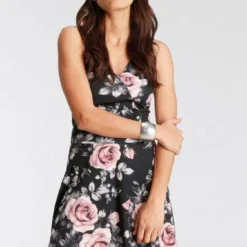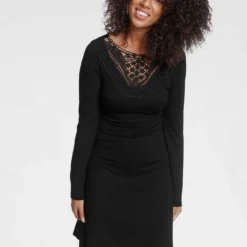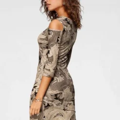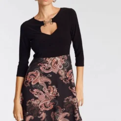Melrose Jerseykleid mit Schulter Cut-Out – NEUE FARBEN Schwarz-beige, Schwarz-rot-gemustert