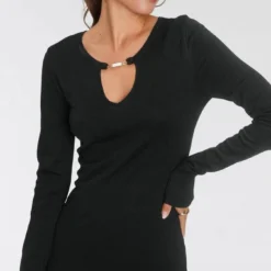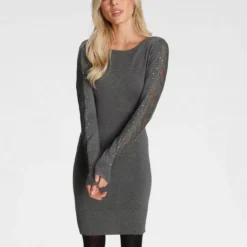 Melrose Strickkleid mit Norweger-Muster Dunkelgrau-schwarz, Schwarz-grau, Camelfarben-braun