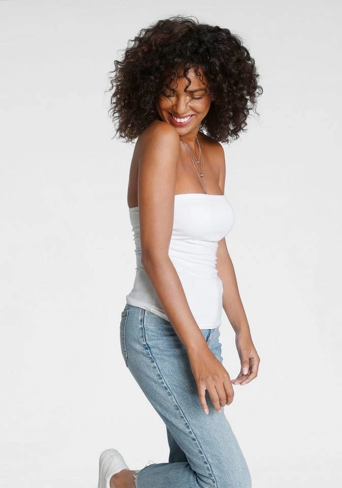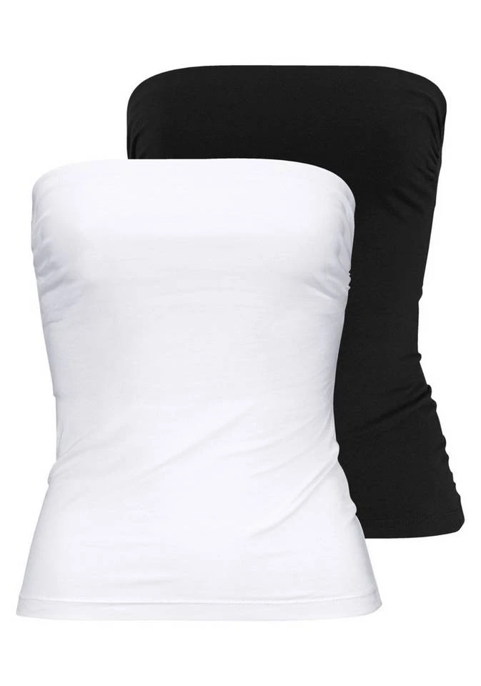 Weil man von den verführerischen Bandeau-Tops gar nicht genug bekommen kann, gibt es die trendigen Melrose-Basics gleich im Doppelpack! In figurbetonender Form mit leichten seitlichen Raffungen. Es gibt immer ein Tube-Top in einer Farbe und eins in Schwarz. Deshalb sind die Bandeau-Tops auch so vielseitig und lassen sich mit fast jedem Outfit kombinieren. Die weiche Stretch-Qualität aus Baumwolle mit Elasthan sitzt anschmiegsam und schön sexy auf Figur. Dieses Melrose-Doppel ist einfach top und unschlagbar!