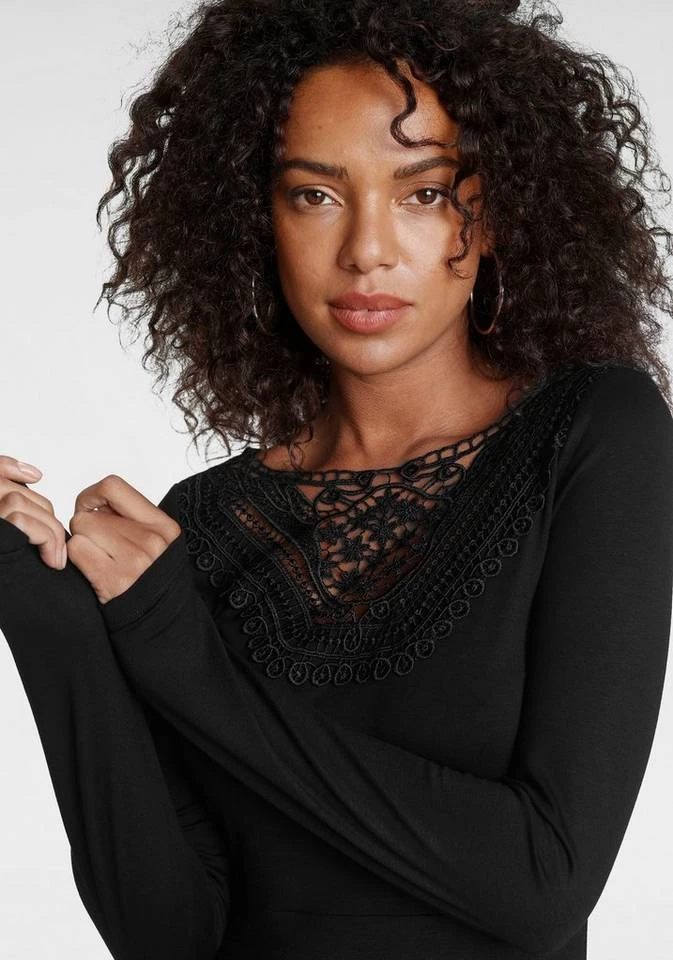 - Mit Volant-Ärmel und Spitze am Ausschnitt