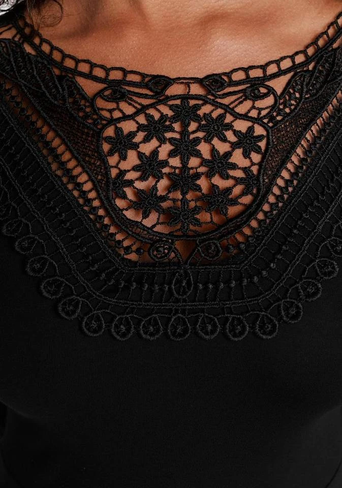 Das kurze Jerseykleid von Melrose bekommt mit der Spitze einen romantischen Look. Der schmale Schnitt betont deine Figur.