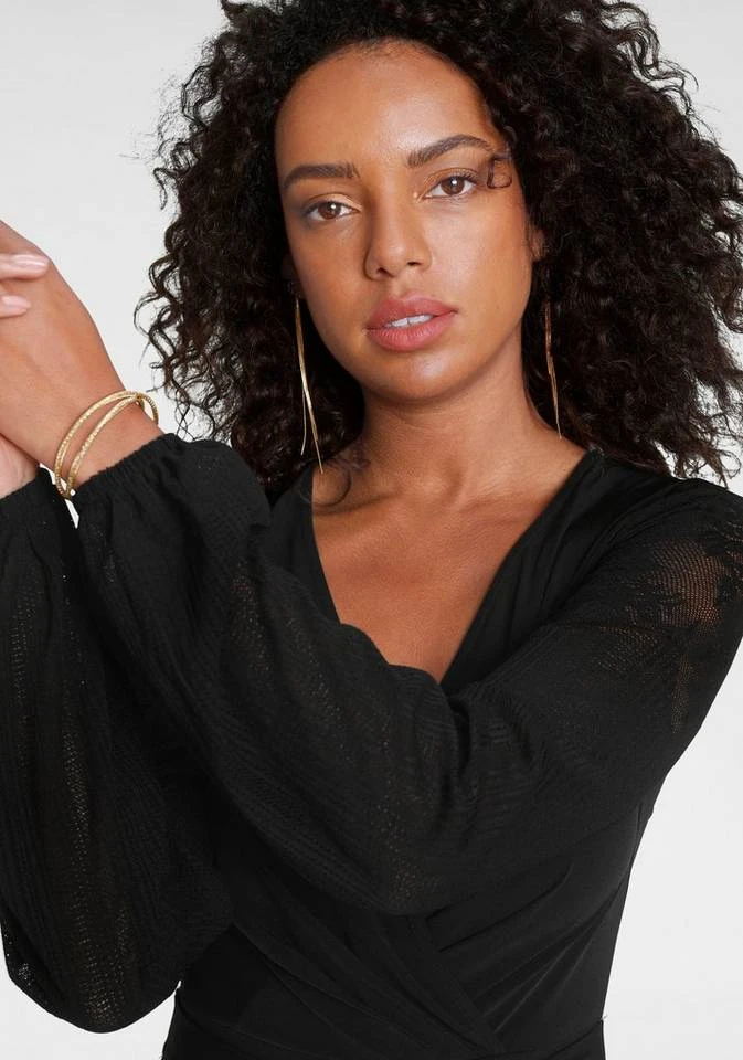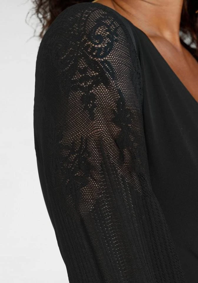- Mit Ärmeln aus weicher, elastischer Spitze