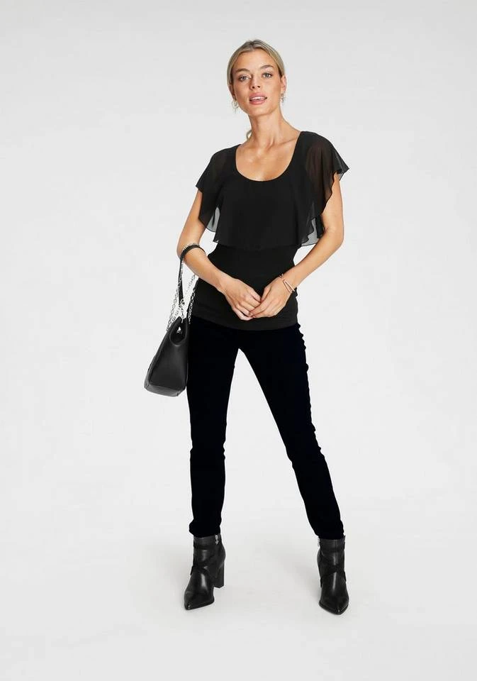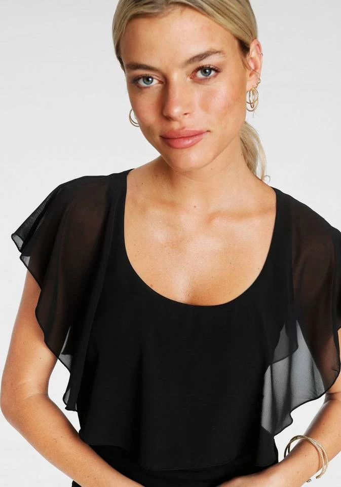 - Materialmix: weicher Chiffon in Kombination mit elastischem Viskose-Jersey