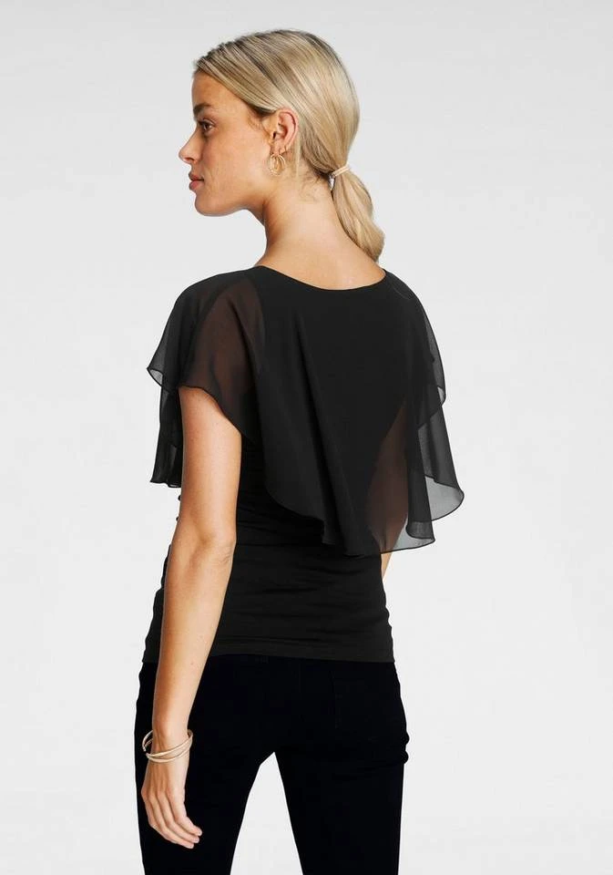 Der Chiffon-Stoff fällt sanft, ist transparent und wirkt edel. Ein Wäschenetz ist beim Waschen dem Shirt ganz praktisch, da es darin geschont wird und das feine Material nicht an anderen Kleidungsstücken hängenbleibt.
