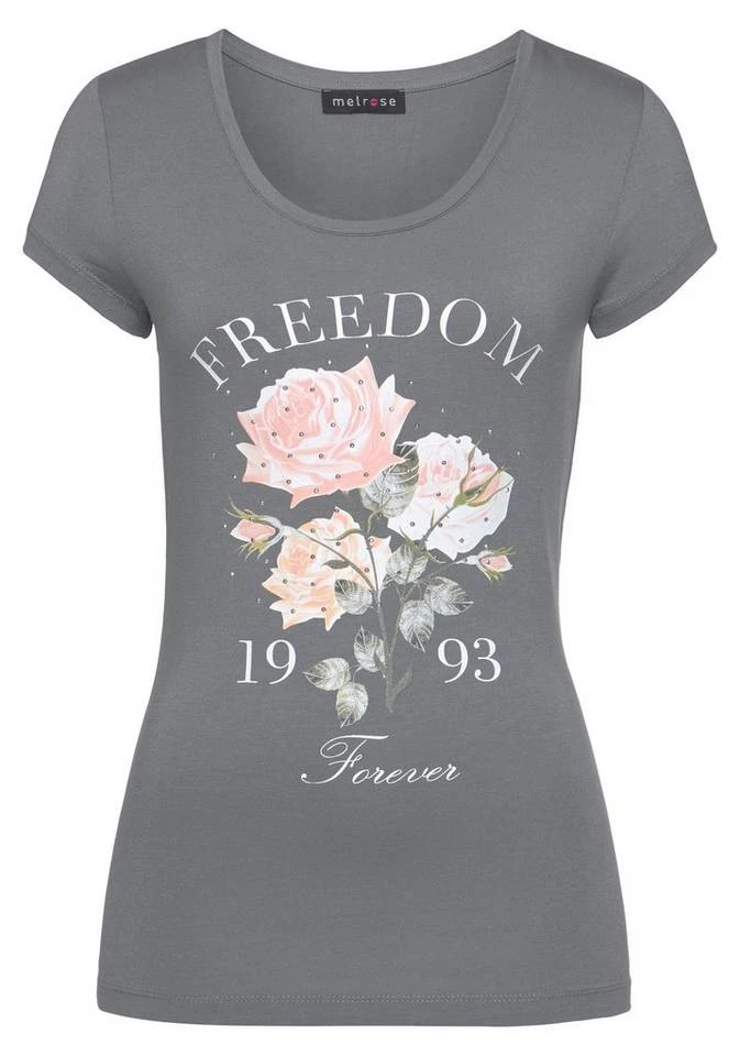Gesucht und gefunden: Schau dir das Kurzarmshirt von Melrose mal genauer an. Mit dem Aufdruck sieht es lässig und peppig aus. Dieses Shirt hat einen Rundhalsausschnitt und ist hüftlang sowie tailliert geschnitten, sodass deine Silhouette schön betont wird.
