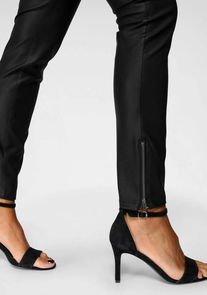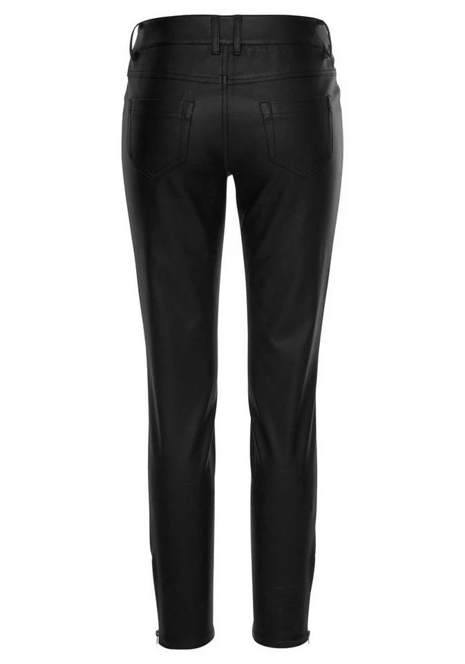 Einen glänzenden Auftritt garantiert die Melrose-Hose aus Leder-Imitat. Geschnitten wie eine Röhren-Jeans sitzt sie knackig vom Po bis zu den Knöcheln. Die vorderen Eingrifftaschen sind mit dekorativen Nieten besetzt, die Taschen hinten mit Steppnähten verziert. Der sexy Style dieser leicht glanzbeschichteten Pants kommt mit High Heels oder Pumps besonders cool zur Geltung und lässt sich mit den entsprechenden Oberteilen von Bluse bis Glamour-Top für Job, Freizeit oder Party individuell kombinieren. Die Hose aus Leder-Imitat von Melrose ist als Jeans-Alternative unverzichtbar.