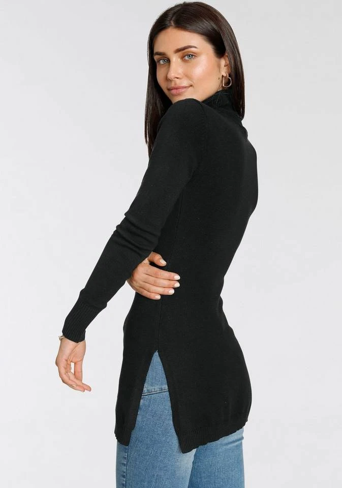 Mit dem Longpullover von Melrose lassen sich einfach neue Outfits kombinieren. Er wirkt mit der Zierschnalle lässig und angesagt. Der Rollkragen wird am Hals umgeschlagen und sieht schlauchartig aus. Er wärmt deinen Hals und umrahmt gleichzeitig dein Gesicht. Die langen Ärmel enden in einem Rippstrickbündchen, das für guten Sitz sorgt. Dieser Pullover ist Po-bedeckend sowie sehr figurbetont geschnittenLongpullover, sodass deine Silhouette schön betont wird. Das Oberteil hat Seitenschlitze, durch die du mehr Bewegungsspielraum bekommst.