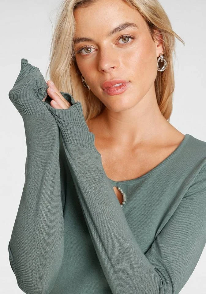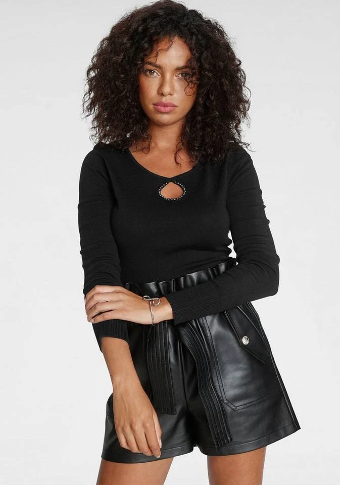 Der Rundhalspullover von Melrose ist nicht nur an kalten Tagen eine praktische Wahl, sondern auch ein Feel-good-Oberteil für zu Hause. Die langen Ärmel enden in einem Rippstrickbündchen, das für guten Sitz sorgt. Dieser Pullover ist hüftbedeckend sowie sehr figurbetont geschnitten, sodass deine Silhouette schön in Szene gesetzt wird.
