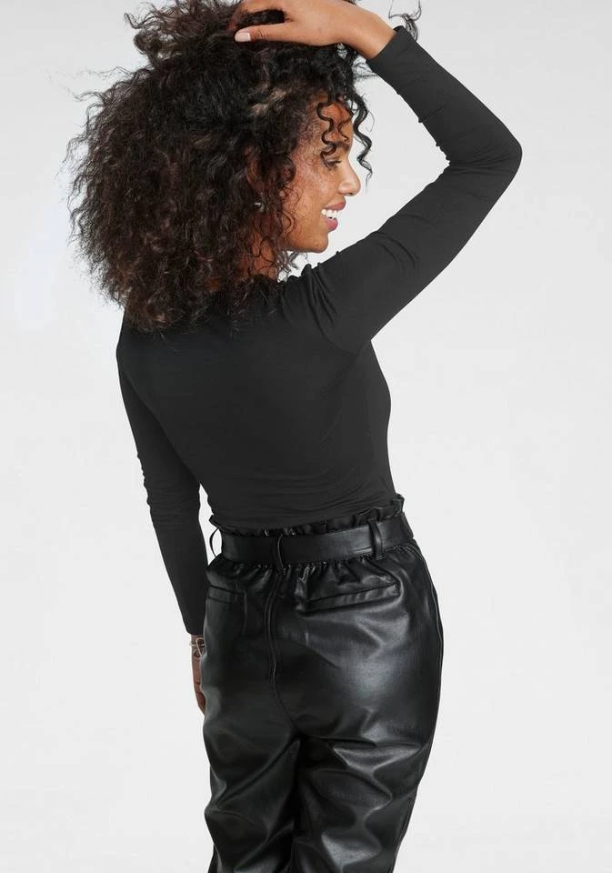 Für das Büro-Outfit kann das Oberteil mit einer Stoffhose und Pumps oder Ankle Boots kombiniert werden. Femininer wird die Kombi mit einem Midi- oder Maxirock.