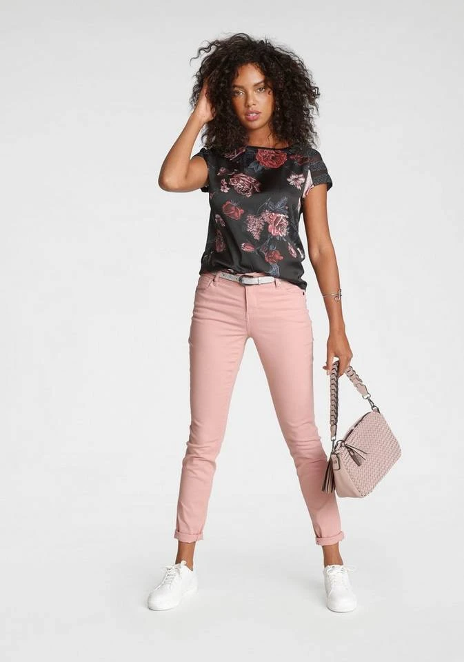 Bei der nächsten Gartenparty kannst du eine lässige Jeans im Used-Look zum Oberteil tragen und mit schlichten, einfarbigen Ballerinas kombinieren. Für den coolen Festival-Look kannst du eine Fransenweste, lange Ketten und Shorts in Wildlederoptik kombinieren.