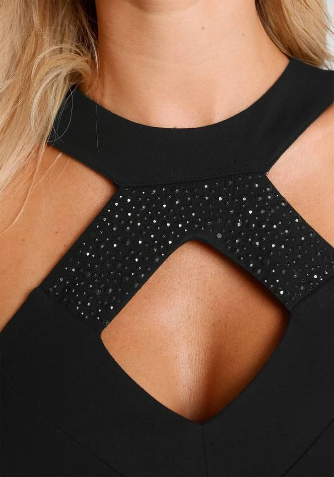 - Mit angesagter Schnittführung und dezenten Glitzersteinen