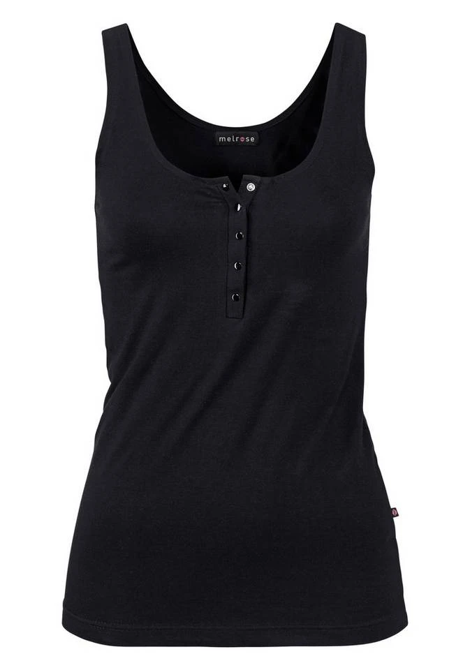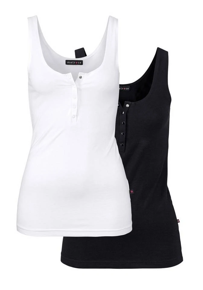 Verführerisch hoch zwei: Diese sexy Tanktops von Melrose machen immer und überall eine super Figur. Die Tops gibt's praktischerweise gleich im Doppelpack – immer in Schwarz plus einer weiteren stylischen Farbe. Besonders raffiniert: die Druckknopfleiste am runden Ausschnitt. Die feine Baumwoll-Stretch-Qualität lässt sich extrem angenehm tragen. Nicht nur drunter ist das Top ein Highlight. Auch solo rockt dieser Style, zum Beispiel zu engen Jeans und Minis, kombiniert mit Armreifen und langen Ketten. Die Long-Tops von Melrose – kombinierfreudige Basics, in denen man einfach immer top gestylt ist.