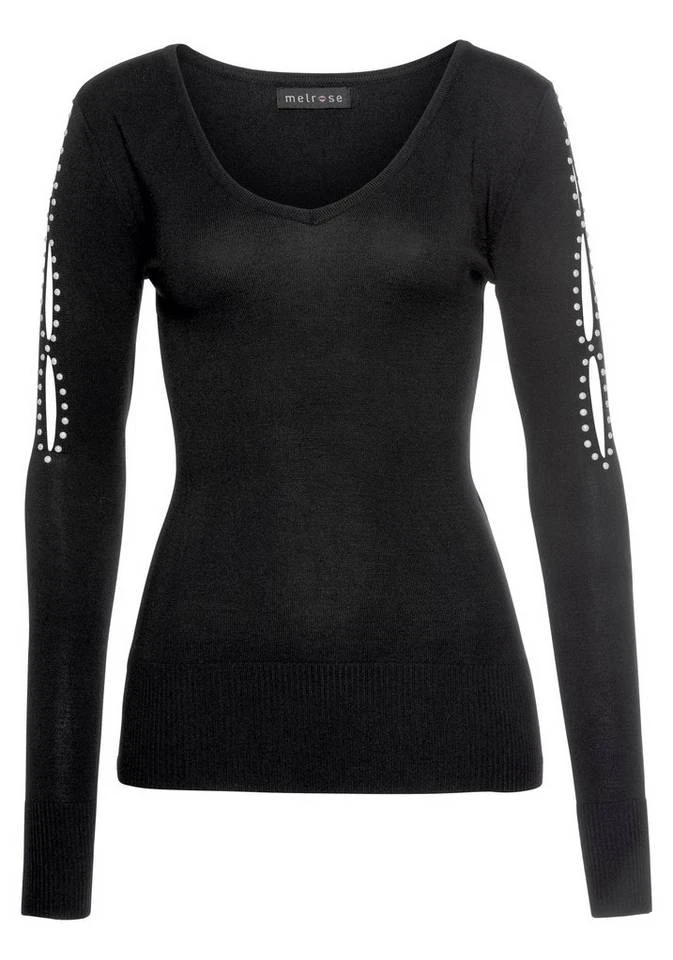 Mit dem V-Ausschnitt-Pullover von Melrose lassen sich einfach neue Styles kombinieren. Die langen Ärmel enden in einem Rippstrickbündchen, das für guten Sitz sorgt. Dieser Pullover ist hüftlang sowie sehr figurbetont geschnittenV-Ausschnitt-Pullover, sodass deine Silhouette schön betont wird.