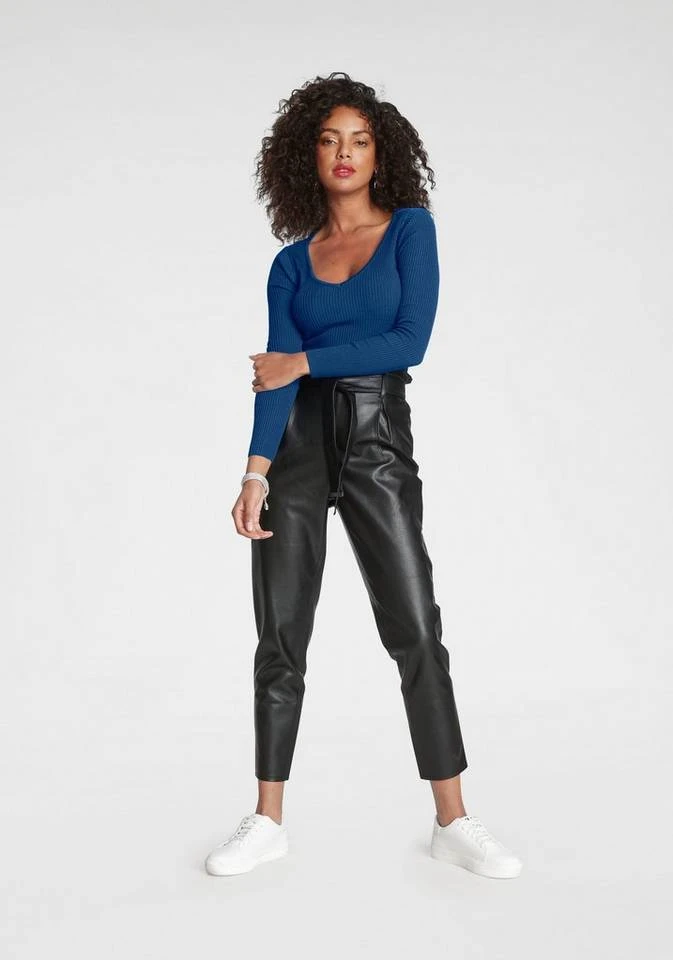 Mit dem V-Ausschnitt-Pullover von Melrose lassen sich einfach neue Styles zusammenstellen. Dieser Pullover ist hüftlang sowie sehr figurbetont geschnitten, sodass er deine Figur auf schöne Weise betont. Das Oberteil hat durch den Rückenschlitz einen höheren Tragekomfort und bietet dir mehr Bewegungsspielraum.