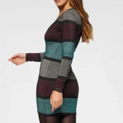 Melrose Strickkleid aus weichem Glitzergarn Khaki-rosa-gestreift, Bordeaux-petrol-gestreift