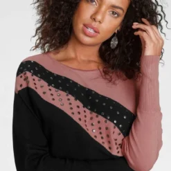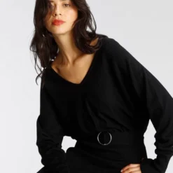 Melrose Strickkleid mit Fledermaus-Oberteil und Ziergürtel – NEUE KOLLEKTION Beere, Schwarz