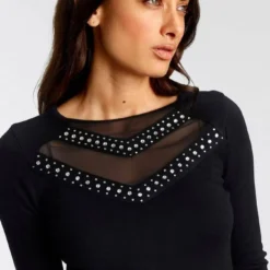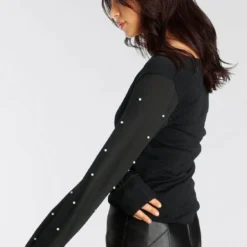 Melrose Freizeitanzug, aus Strick mit Perlen-Details – NEUE KOLLEKTION Schwarz, Beige-meliert